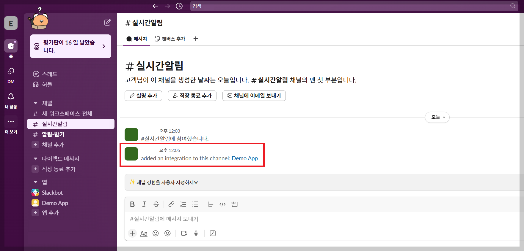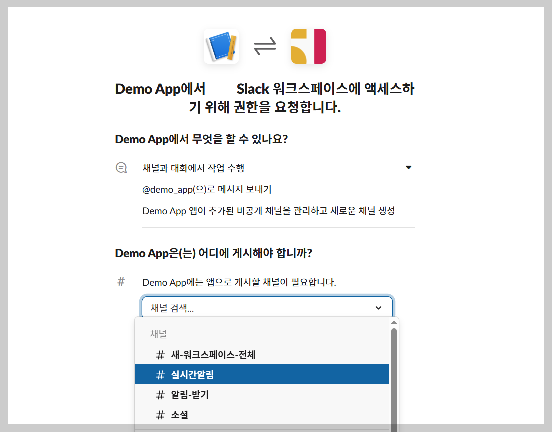 5. 앱 인스톨하기 (채널에 앱 추가)