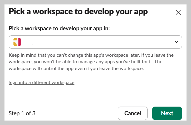 상기 링크에서 Create an App 버튼 클릭하고 팝업에서 "From a manifest" 선택