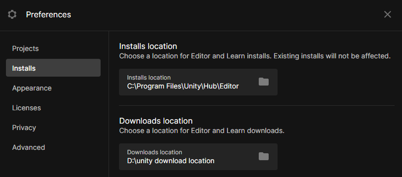 1. 유니티 허브 Preferences에서 다운로드 경로 확인